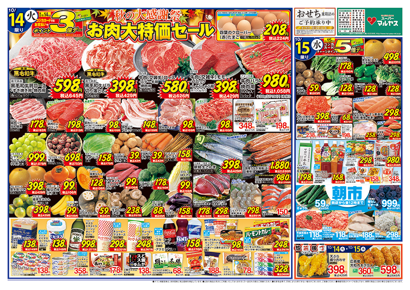 秋の大感謝祭!!マルヤスのお肉大特価セール!木~金はお鍋特集を企画そろそろ鍋の季節ですね~