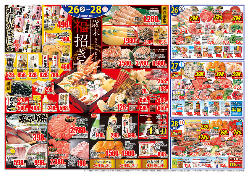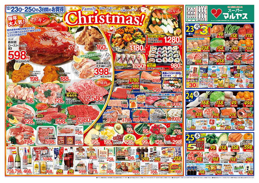クリスマス!!と歳末福招き!!クリスマスはマルヤス自慢のローストレッグはいかがですか?特製タレで焼き上げました。