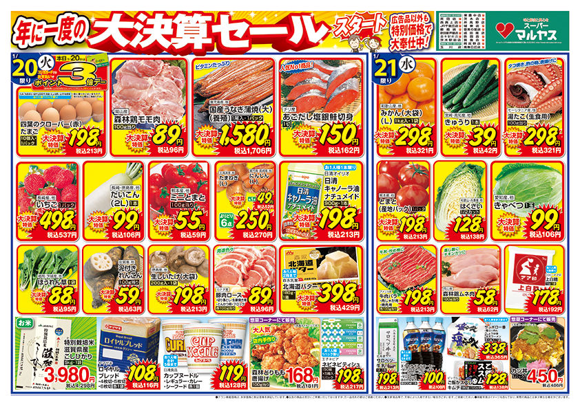 大決算セール!!今期もマルヤスをご愛顧頂きありがとうございました。日頃の感謝を込めまして大決算セールスタートです!!