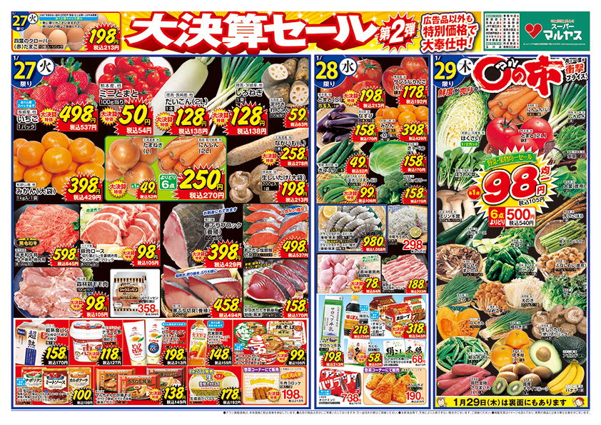 大決算セール第2弾!!29日(木)は恒例〇の市!!お買い得な野菜・果物を大放出!!