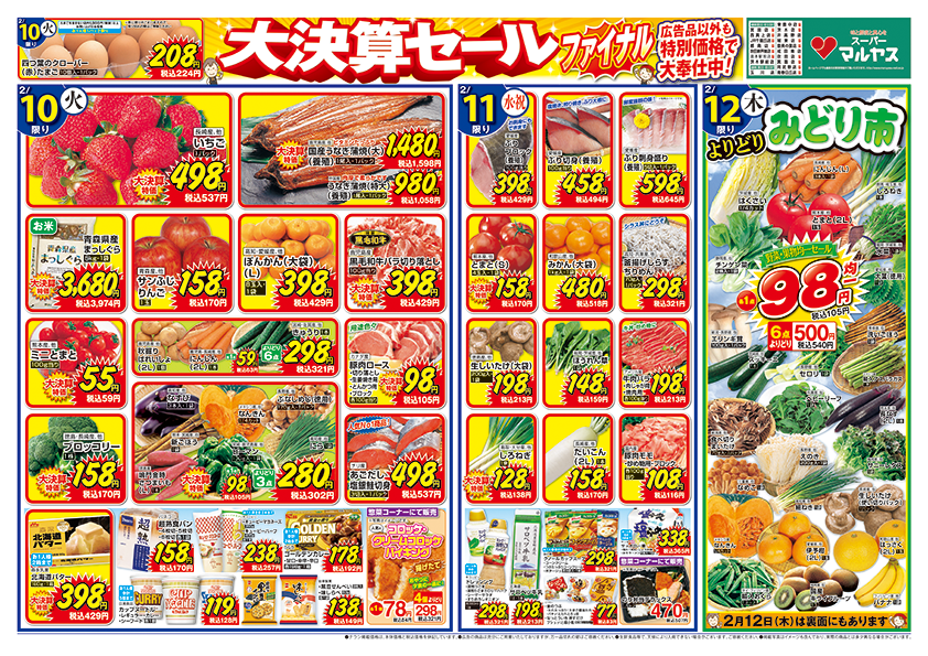 大決算セール!!ファイナル!!お客様感謝価格にてお待ちしております。12日は青果よりどりみどり市開催!!